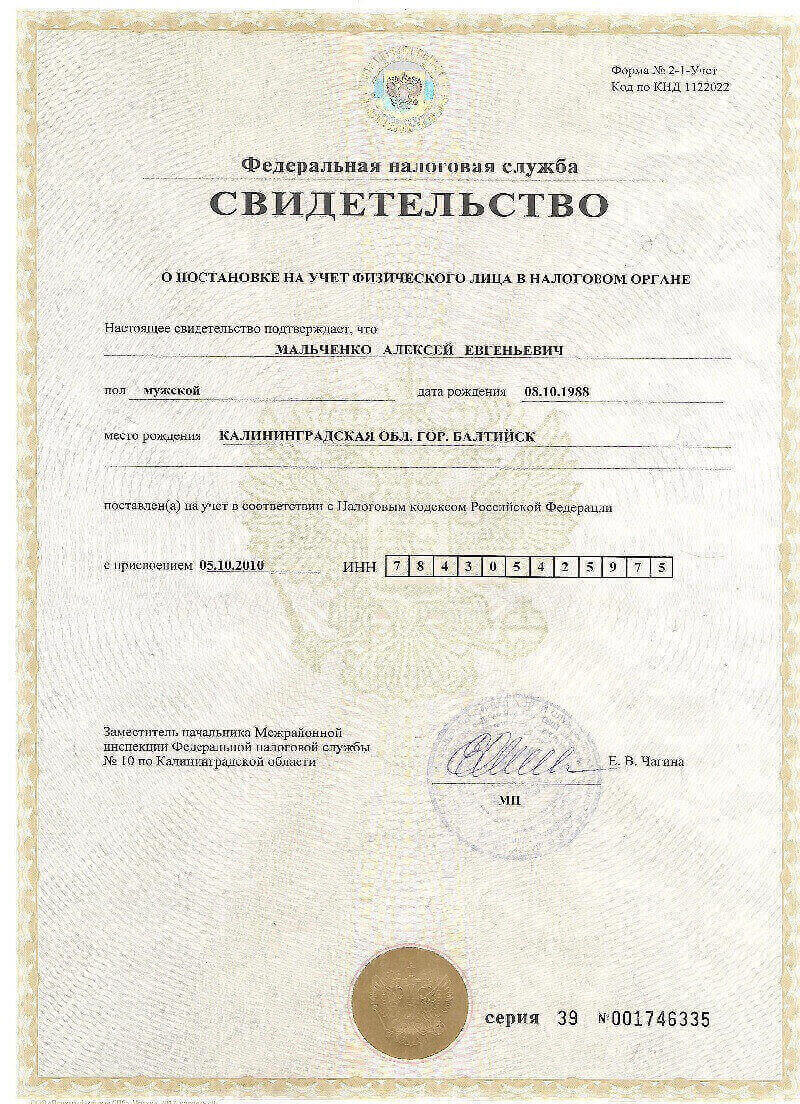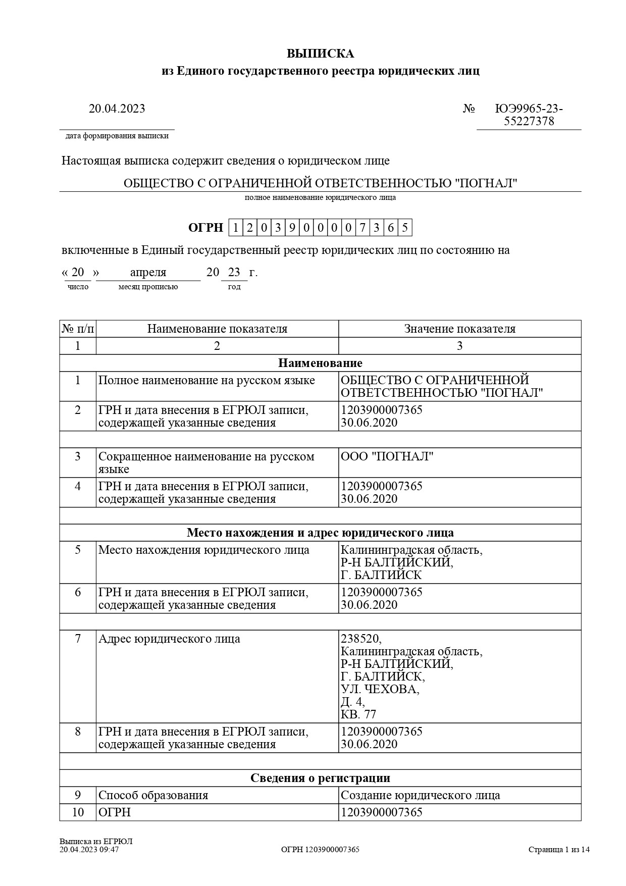 Юр. адрес: 238520, Калининградская обл. г. Балтийск, ул. Чехова 4, кв 77