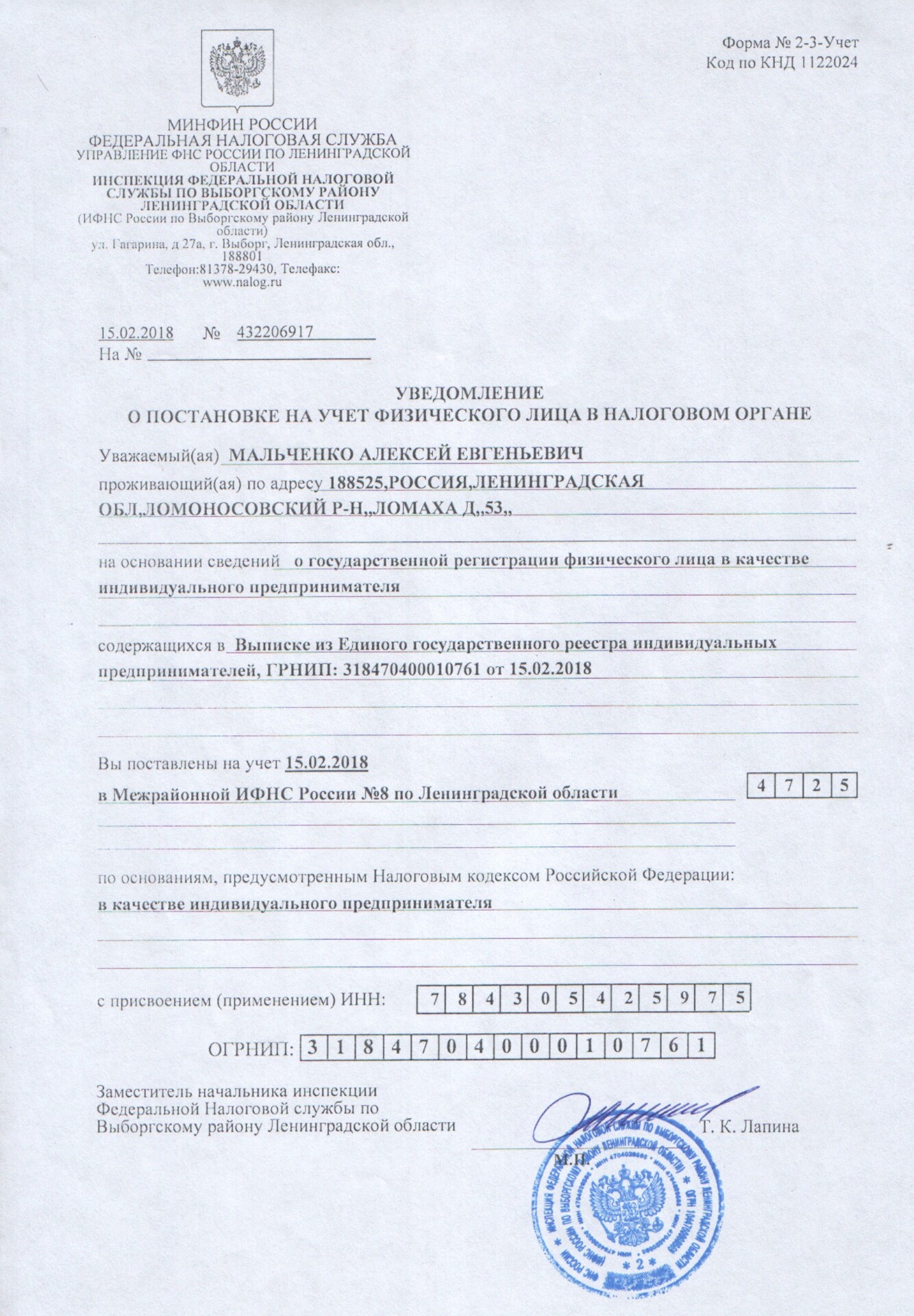 Индивидуальный предприниматель Мальченко Алексей Евгеньевич